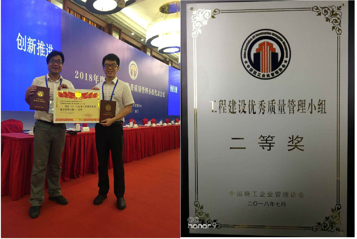 2018年7月09日至13日中国施工必赢bwin线路检测中心管理协会组织的“2018年度工程建设优秀质量管理小组代表会议”于在厦门市召开,经申报、评选、推荐到审定,我司兴业安置小区QC小组参选的《提高混凝土墙体水平施工缝质量合格率》课题成果荣获二等奖。