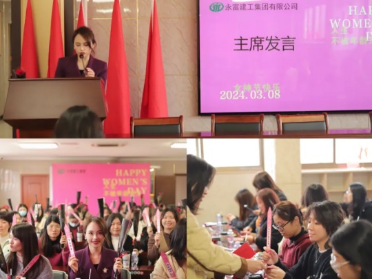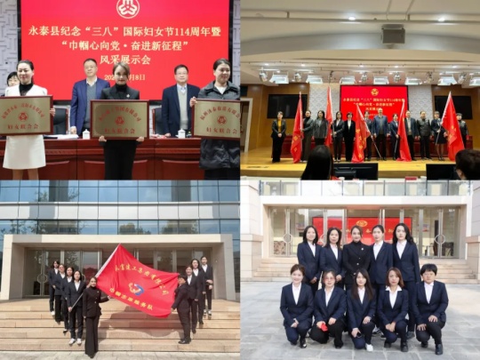 3月8日上午,集团妇联主席倪彦彬带领集团部分妇联执委参加永泰县妇联开展的活动。在永泰县纪念“三八”国际妇女节114周年暨“巾帼心向党·奋进新征程”风采展示会上,永泰县委常委及统战部部长柯永华为集团授牌;县妇联主席郑宁为集团授旗;集团倪彦彬主席在会上分享了以《那道柔光》为主题的演讲,讲述集团女性精彩绽放瞬间。