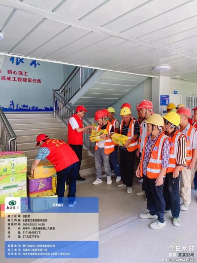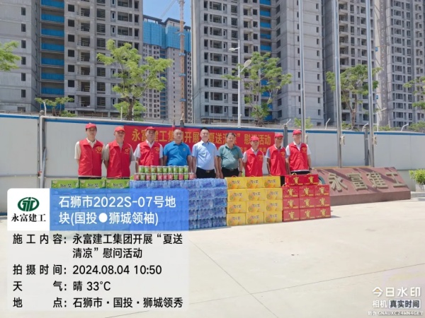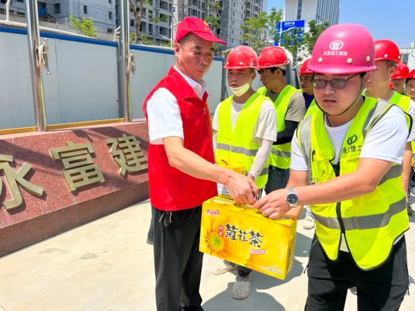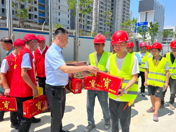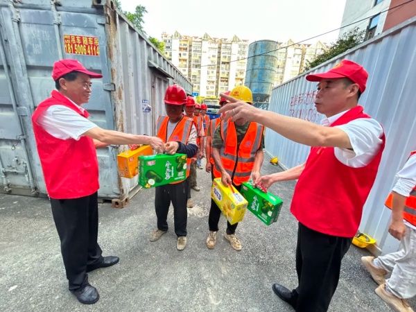 烈日炎炎,为关心一线员工的身心健康,做好高温天气员工劳动保护工作,集团开展“夏送清凉”慰问一线员工活动。8月2日至5日,集团胡敬铨总经理、党总支倪章荣书记、工会陈彬光主席带队,先后到邵武一中新校区项目部、石狮市国投·狮城领秀项目部、福州第四中学桔园洲中学教学综合楼项目部开展“夏送清凉”慰问活动,看望慰问高温下坚守工作的劳动者,并送去矿泉水、清凉饮料等消暑物品,传递集团总部对一线员工的关爱。