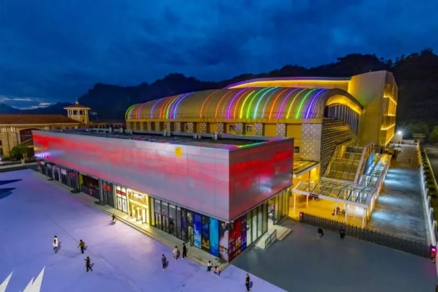 《月映武夷》剧场位于武夷山国家旅游度假区,以“天人合一”的理念打造多维度立体架构的沉浸式室内剧场,其超宽画幅智能水舞台宽度达67.8米,深度51.3米,台口跨度52米,可容纳8225吨水循环系统,实现“水下机械升降、平移、旋转、翻转”和“全景水幕投影”等特效。