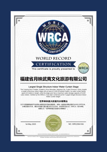 2025年5月1日,2000多名观众现场见证武夷山诞生了一项世界纪录:《月映武夷》剧场被世界纪录认证机构(WRCA)认证为世界单体最大的室内水幕舞台。